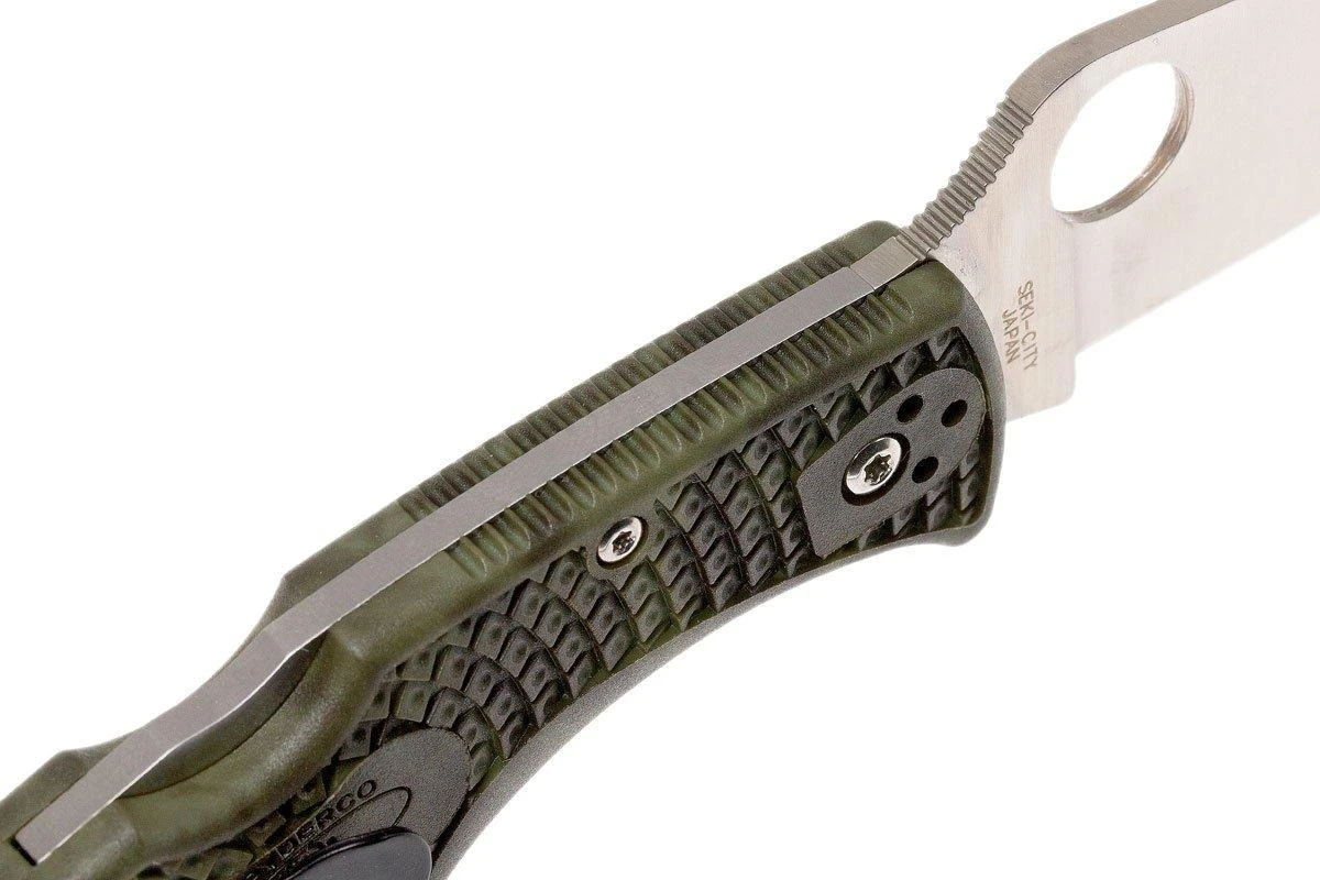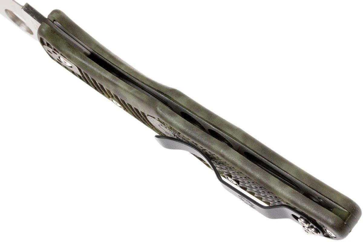 La Spyderco Endura 4 Zome es la navaja perfecta para quien ama las navajas Spyderco pero siente que la Delica es demasiado pequeña. La Endura 4 tiene una longitud de hoja de 9,6 cm. Una diferencia de 2,3 cm en comparación con la Delica podría no parecer mucho, pero esta navaja se siente mucho más grande. Gracias a su tamaño, también es fácil de llevar. Gracias al FRN (nylon reforzado con fibra de vidrio), el cuchillo es muy ligero. La solidez se ve incrementada por los revestimientos de acero. Sin embargo, estos se fresan para que los revestimientos no hagan que el cuchillo sea demasiado pesado.